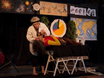 Découvrez l'histoire passionnante du Big Bang à nos jours, racontée à l'échelle d'une heure, pendule en poche, par deux clowns.